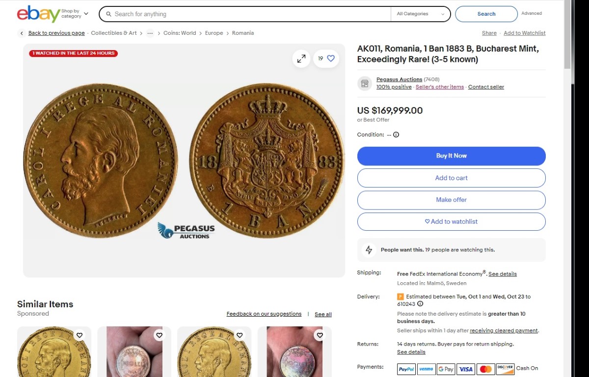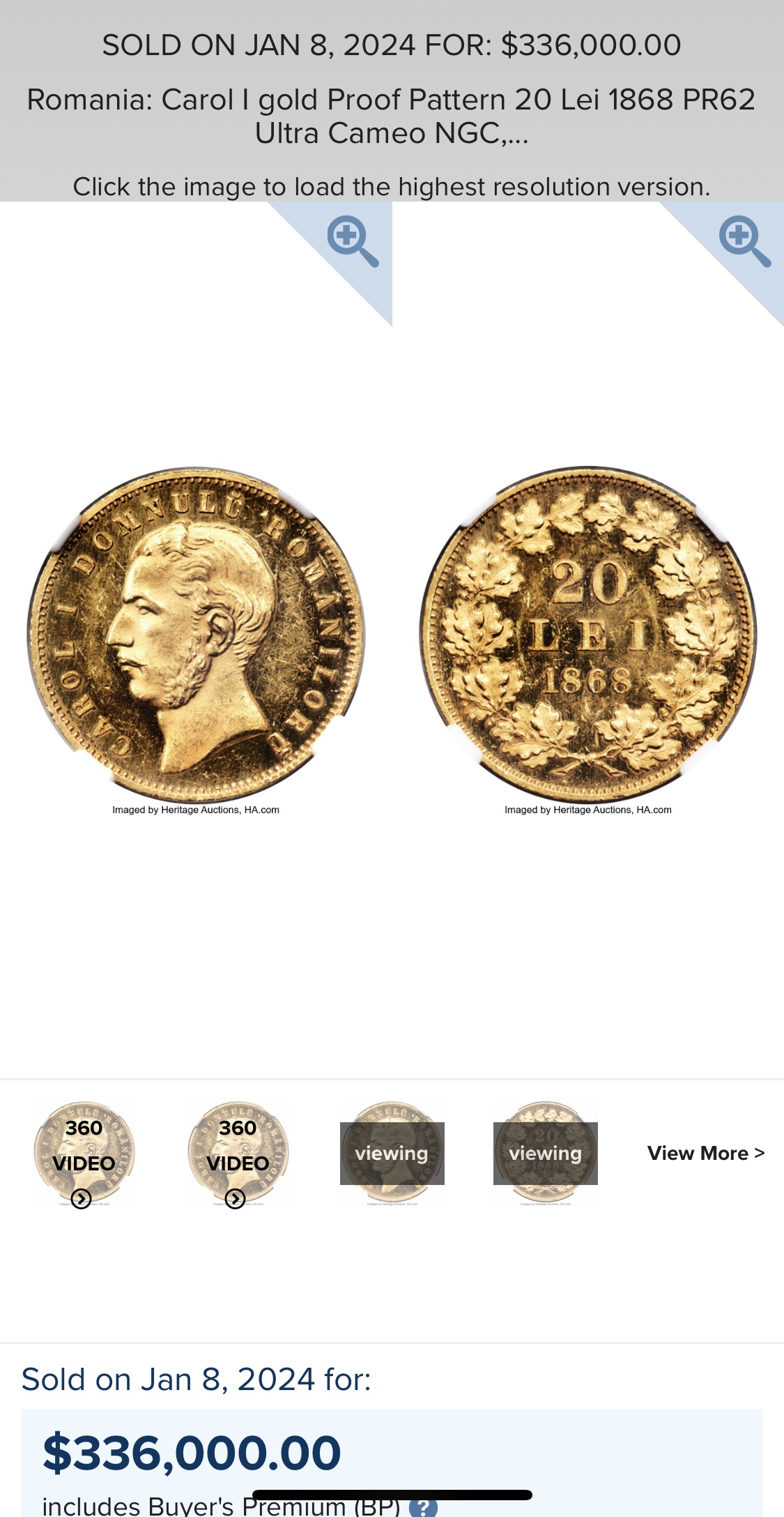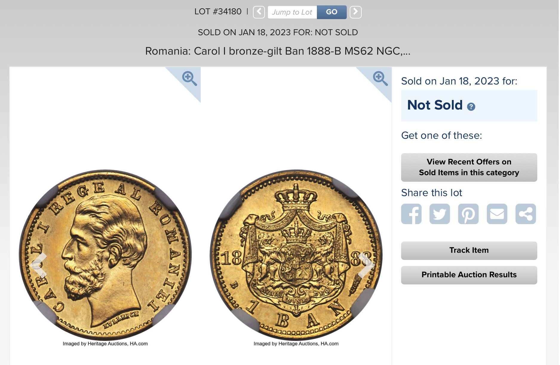 Pentru colegii, care n-au urmărit ultima licitație a casei Heritage Auctions (HA): se pare că s-au realizat noi recorduri pentru marile rarități ale numismaticii românești. Poate chiar unul absolut, pentru polul din 1868?