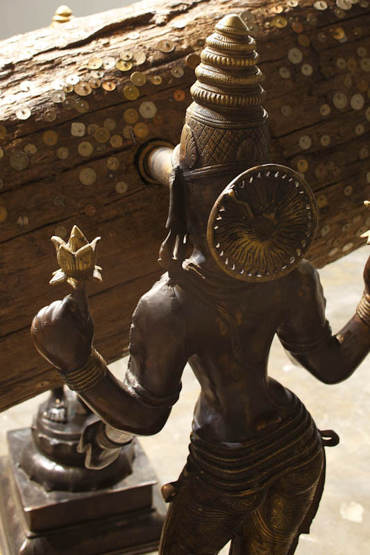 Reîntâlnesc în această lucrare imagini de prin Nepal şi India unde în locuri publice se ţintuiesc monede pe lemn, dar artistul / cataloagele nu arată această sursă de inspiraţie. Dacă mai vedem că şi perechea de statute este un copy/paste, rezultatul final este mult diminuat (rămâne o "simplă" instalaţie, cu o minimă intervenţie artistică)