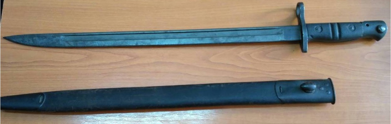 Baioneta, fabricată în a.1917 și lama de 43 cm lungime, a fost găsită într-un pachet poștal transmis din Germania și urma a fi recepționată, de asemenea, de către un bărbat domiciliat în Capitală. De această dată, expeditorul indicase că în colet s-ar afla un cuțit.