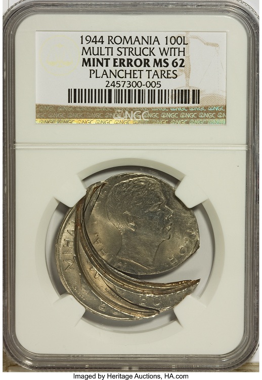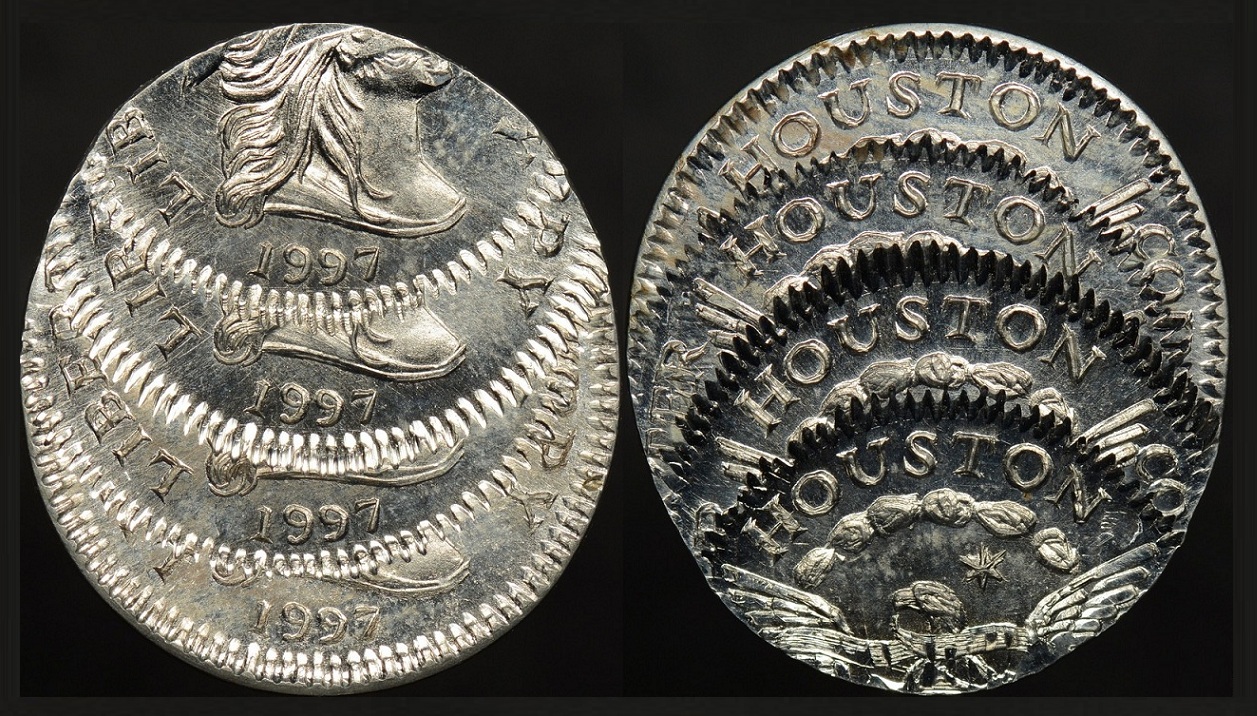 Dar iată ce spune colecționarul: „Erori. Erorile sunt treaba mea. Le iubesc și sunt cam singurul obiect numismatic pe care l-am colecționat din prima zi a acestui hobby. Prea multe pentru a le posta aici.”, iar despre piesa din imaginea de mai sus: „Nu este cu adevărat o eroare deoarece a fost manufacturată deliberat pentru Houston Coin Club. Cuadruplă batere.”