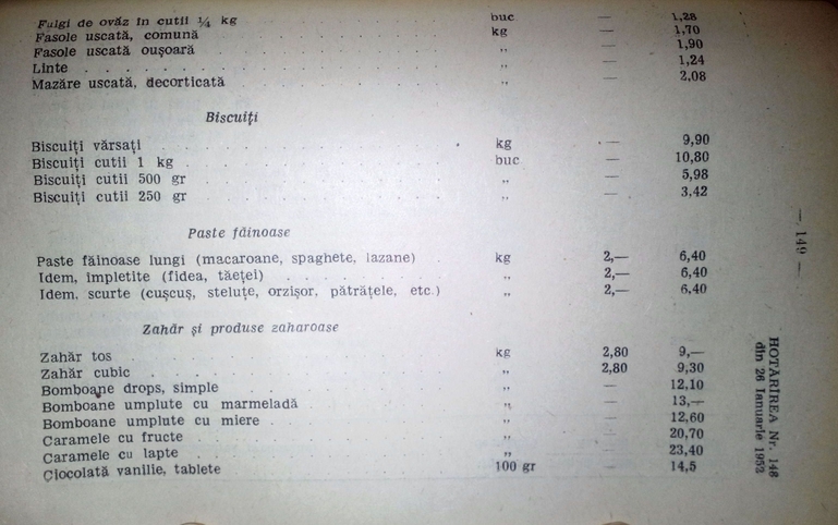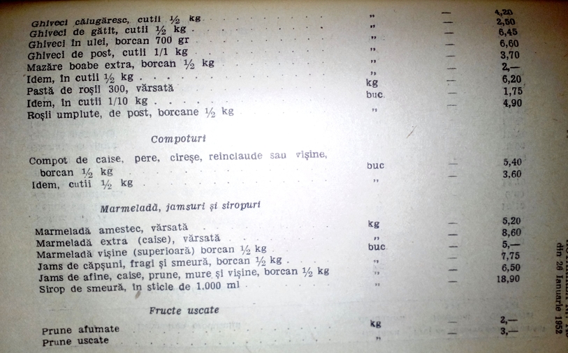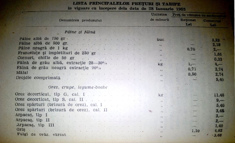 Acum sarim la inceputul anilor 1952 si va atasez niste poze cu preturile diferitelor bunuri......lectura placuta!!!