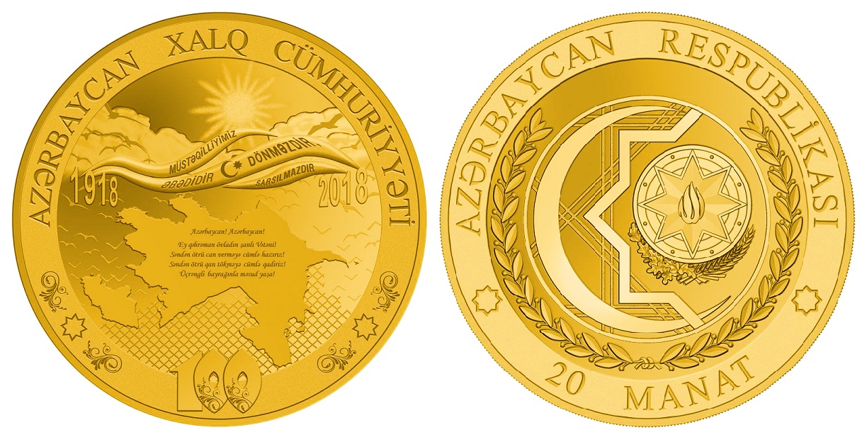 Banca Naţională a Republicii Azerbaidjan a emis 3 monede aniversare dedicate centenarului creării Republicii Populare a Azerbaidjanului (28 mai, 1918).