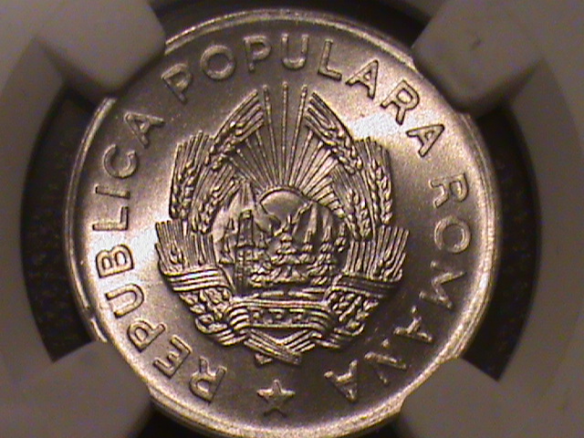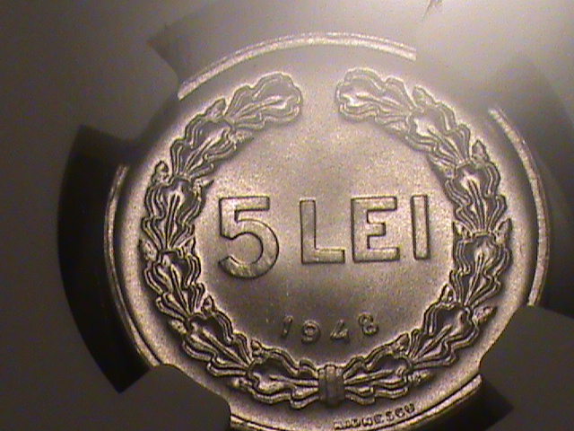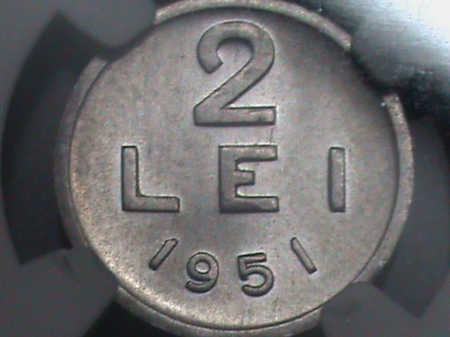Mai apar si celelalte monede de aluminiu.5 lei 1951 mi se pare mie cea mai rara pentru ca e cea pe care am vazut-o eu mai rar.Aluminiu e moale si greu sa scape monedele fara contacte.Pozele mele nu ies asa bine.2 lei 1951 a luat si el 67 la NGC.