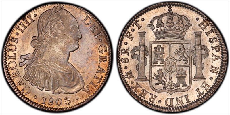 Un 8 reales 1803-Mo MS63 de 27,07 grame http://www.pcgs.com/SetRegistry/coinfac ... sid=116045 (numai una pentru milesim)