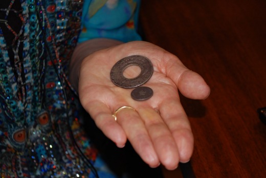 Ca o ironie, miezurile de 1 şiling au "migrat" şi ele în Anglia pentru că dimensiunile au fost greşit calculate, astfel încât valoarea argintului miezului (mai mare în greutate decât 1 şesime) era mai mare de 1 şiling. Dacă "holey dollar" se mai află ocazional prin muzee şi colecţii private, "dump" este extrem de rar.