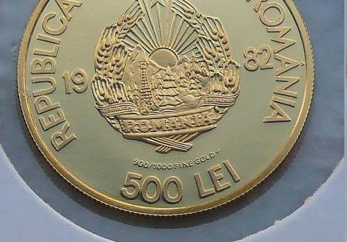 Primele bateri de probă au fost realizate în primăvara lui 1982, din argint placat cu aur, respec­tiv din argint. Aceste probe prezentau abateri faţă de modelul solicitat. Stema ţării era deformată, iar litera "E" de pe ambele feţe ale monedei rotunjită. Au fost necesare noi probe, iar la sfârşitul aceluiaşi an au fost bătute primele monede, cu valoare de 500 lei cele din aur şi 100 lei cele din argint. Ele erau destinate în principal să stimuleze interesul colecţionarilor pentru monede româneşti. în 1982 s-au bătut numai 1436 piese (508 din aur şi 928 din argint), din care 372 de seturi conţinând ambele monede.