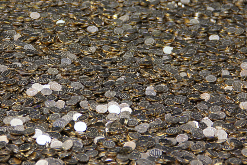 popoviciliza scrie: [...] Panoul mural este de fapt un magnet uriaș care ține în loc zeci de mii de obiecte metalice - inclusiv dolari și cenţi [...]