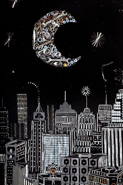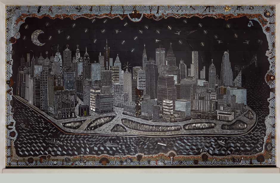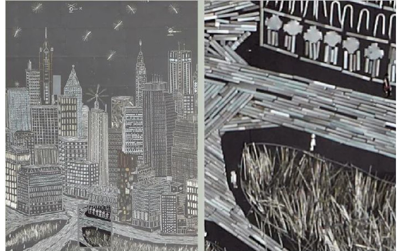 "Manhattan Mettle" este un panou de 8 x 5 m, tehnică mixtă şi este conceput ca un magnet care ţine pe loc zeci de mii de elemente (între care dolari, cenţi, jetoane de metrou...)