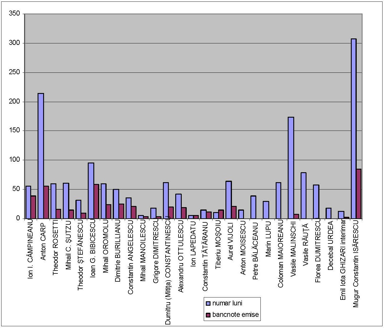 Spre exemplu, este remarcabil că primul guvernator, care a fost sub presiunea emiterii primelor bancnote (de amintit numai nevoile statului temporar acoperite de biletele hypotecare) NU ocupă un loc între primii 3 care ne umplu de emisiuni.