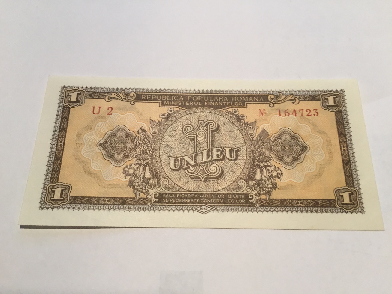 1 Leu 1952, serie rosie, UNC.