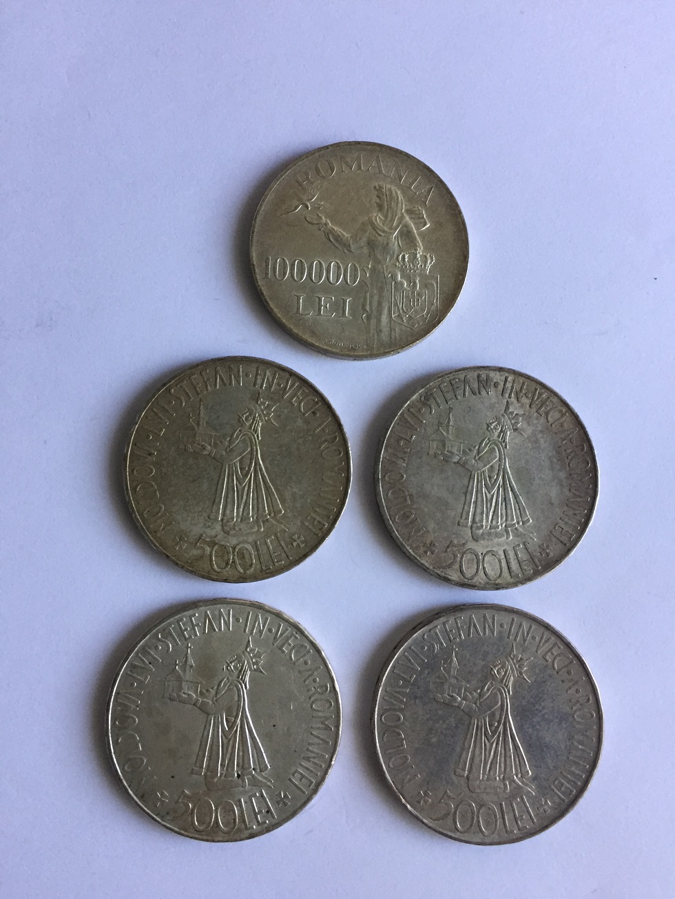 500 Lei, 25.000 lei si 100.000 lei, argint