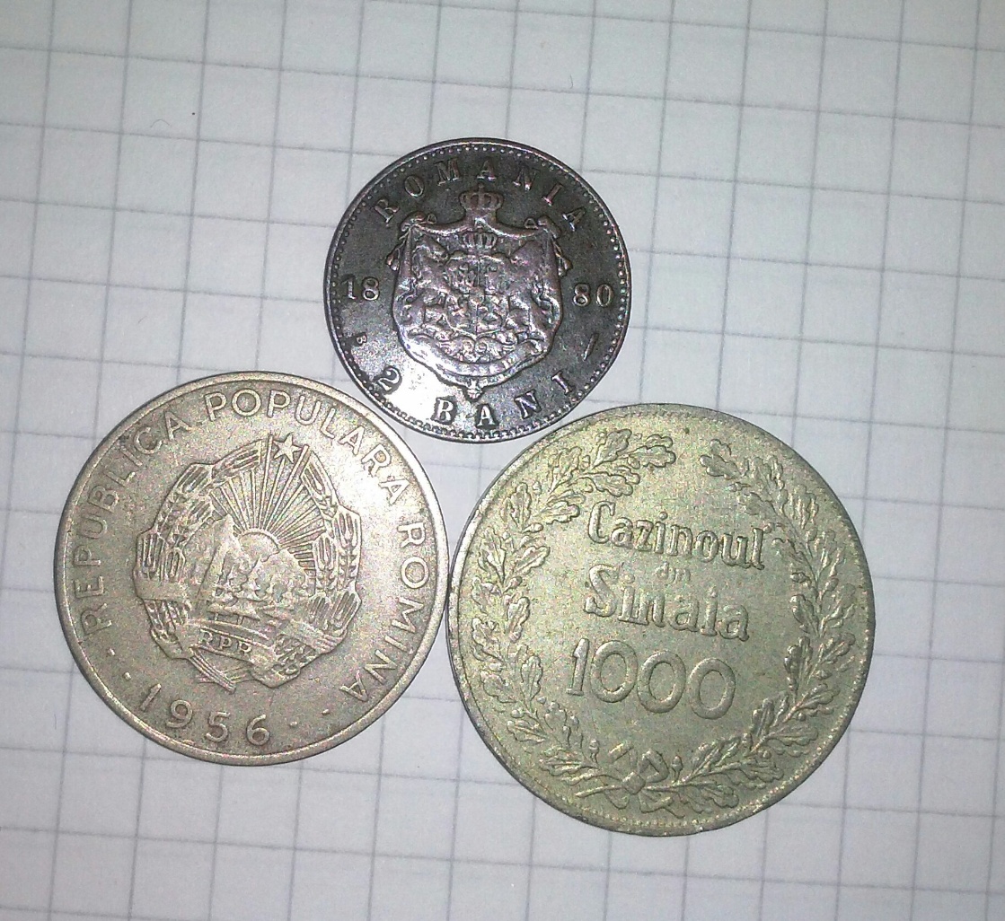 2 bani 1880, 50 bani 1956 , jeton Cazinoul din Sinaia 1000 , pret 60 lei