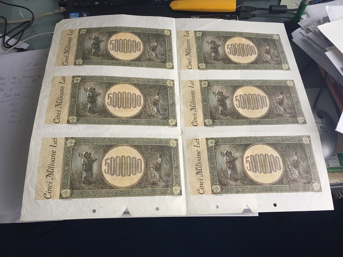 Coala cu 6 bancnote de 5.000.000 L. 1947, EUR 870,- inclusiv pachet DHL.